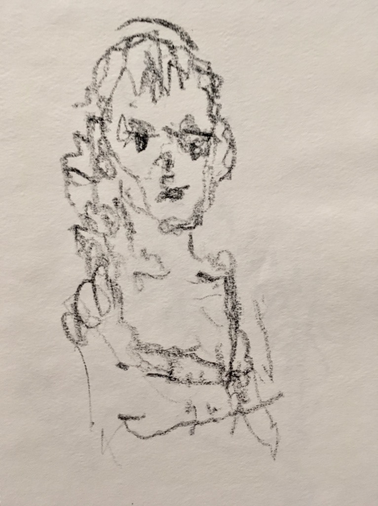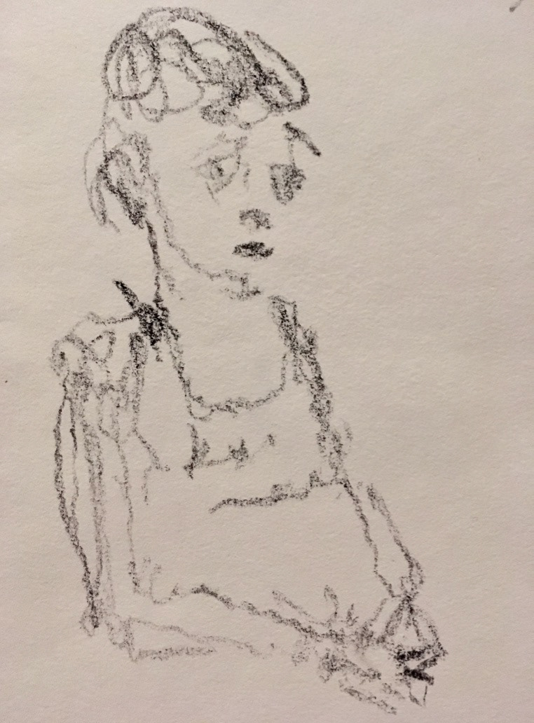 "Patricia Seated at Table" crayon on paper 2016